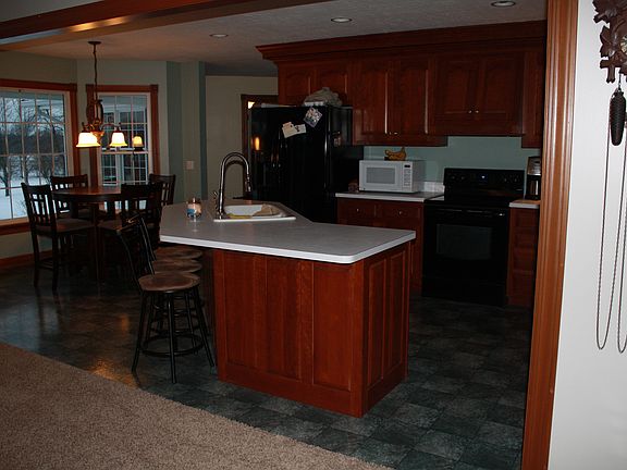 Beautiful home on 4 acres with views of the sunrise and sunset. Quiet and peaceful living. Two car finished attached garage with attic for storage. Over 1900 square foot work shop with cement flooring and insulated. Walk in attic above workshop. Well and septic. Propane heat. Gas fireplace in living room. New carpet in living room, dining room, entry and master bedroom. Wood vinyl flooring in master bath with Jacuzzi tub. Large master bedroom walk in closet. Covered front and back porch with small water pond for quiet and peaceful evenings. Outdoor hot tub included.