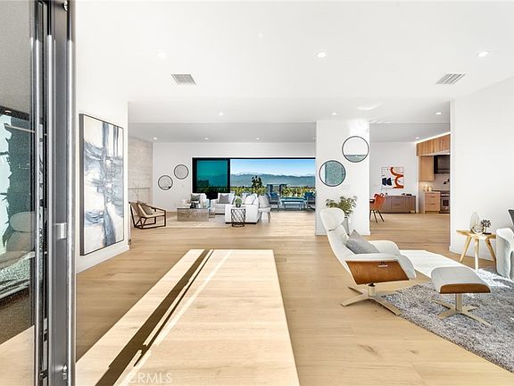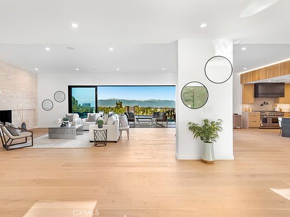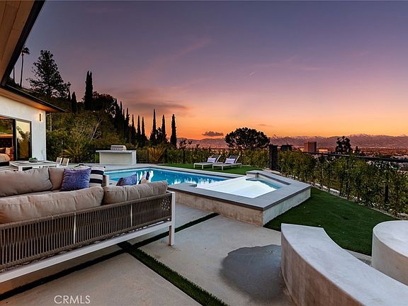 Meticulously crafted single-story Mid-Century modern in the sought-after enclave of Encino. Set back within a long private driveway, you are invited into a lush curb appeal with a 2-car garage and a covered carport. Fully remodeled with new floors, textured accent walls and stunning light fixtures throughout, this generous open floor plan welcomes you into the formal living room adjacent to a great room with soaring ceilings, stone fireplace and large stacking glass doors that open into your entertainer's dream backyard. The Gourmet Chef’s kitchen boasts caesarstone counters, Thermador stainless-steel appliances, an island with a breakfast bar, and a custom wine cellar. The exquisite primary suite features access to the backyard, walk-in closets, and spa-like master bath with soaking tub, glass shower, and dual vanity. Two guest rooms complete the main sleeping quarters, while a third and fourth sit quietly apart, ideal for in-laws, guests, maids' quarters or office space. The private yard has an abundant entertaining space, inground private pool with spacious elevated spa, fire pit, outdoor BBQ center with tremendous patio spaces perfect for al fresco dinners, and jetliner views of the San Fernando valley. Enjoy everything Encino has to offer, located in the prestigious Royal Oaks neighborhood south of Ventura Blvd, award winning Lanai School district, near shops, restaurants, and more!