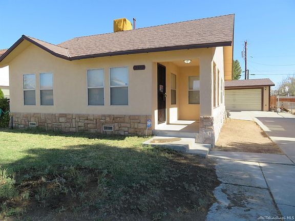 Cute, Cute, Cute! This home is move in ready! Covered porch entry into living room with arched transition to spacious dining room. Kitchen has new stove and cute original cabinetry. Bathroom has been updated with new sink and tub/shower combo. Carpet in living, dining and hall and vinyl flooring is new. Indoor laundry too. Roof is new (Sept 2019) new evap cooler, new interior and exterior paint. Original interior door knobs are beautiful and ornate.Detached garage is large and has an additional room that has laundry hookups. You can put a water heater on the stand with vent already there. This property is zoned R-2, so you can add another residence. Plenty of room for an RV with electrical connection already in place.This property has so much to offer.