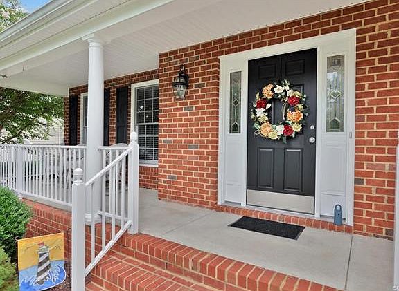 Beautiful brick front home in desirable Foxfire community! Enter from the full masonry front porch into the spacious 2 story foyer which leads to formal rooms showcasing detailed molding and hardwood floors. The eat-in kitchen has granite counters with tile backsplash, island, built-in desk, wood floors and recessed lighting. The bay window in the family room brings in extra light & adds to the great space in this room for entertaining. Two rear staircases provide easy access to the second floor! Large master suite includes two walk-in closets, & an en-suite bath with 6' jetted tub and bay window. 3 additional bedrooms on the second level, 2 of which have walk-in closets. The 5th bedroom and full bath are on the third level. Temperature controlled storage is also on the third level. Privacy abounds while sitting on the expansive stained deck overlooking woods abutting the rear of the property. Additional features: Security System, Concrete drive w/rear entry garage, irrigation, mature landscaping with landscape lighting. Foxfire amenities include pool, clubhouse, tennis courts, playgrounds, sidewalks, & walking trails w/water access for small boats! Award winning schools!