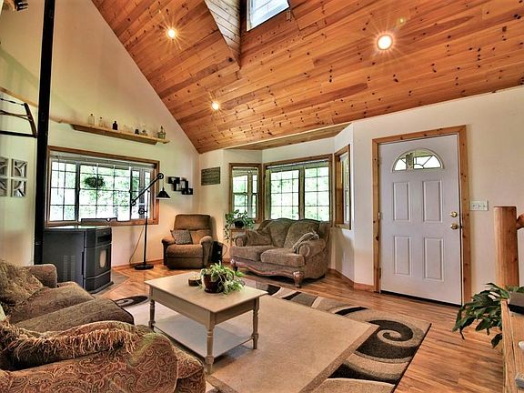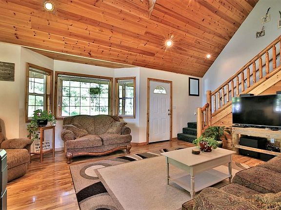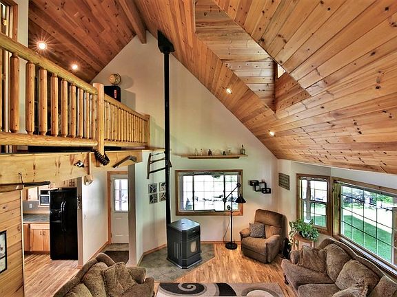 Cozy cedar sided home nestled in the trees on 10.23 acres in Spirit Lake East! 4 bedroom, 2 bath home with main floor master, vaulted T&G ceilings, wrap around porch, pellet stove, metal roof, and enclosed rear porch with hot tub. 24x50 shop &16x34 lean to woodshop w/ a man cave and 1/2 bath! All w/ two carports for your toys. Walking trails w/ gazebo & additional storage building as well. Pride of ownership here!