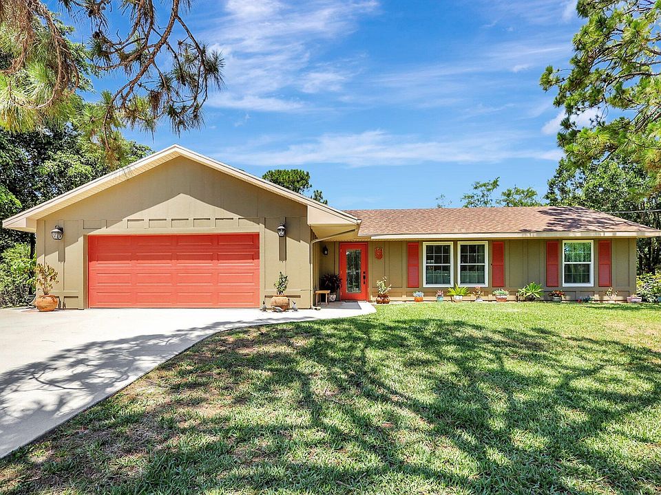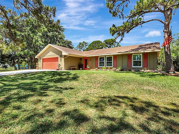 This unique residence, immaculately maintained and updated by its original owner, combines modern comfort with timeless appeal on a spacious 1.23-acre, moderately wooded lot. The home boasts all-new Miami-rated impact windows and doors (2023), brand new A/C and ductwork (2024), newer architectural shingle roof, and all newly installed siding. Updated kitchen cabinets richly complement french doors which lead into the large, newly resurfaced, fenced-in private pool and freshly painted deck. Enjoy the view of your meticulously landscaped yard, complete with fruit trees, a private pond, and plenty of space for the kids to play. As a non-HOA neighborhood, Palm Beach Country Estates provides a sought-after blend of freedom, seclusion, and accessibility - close to top-rated schools, shopping, dining, and entertainment. Schedule a showing as soon as you can for the opportunity to own this coveted piece of Florida real estate.