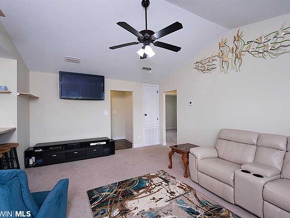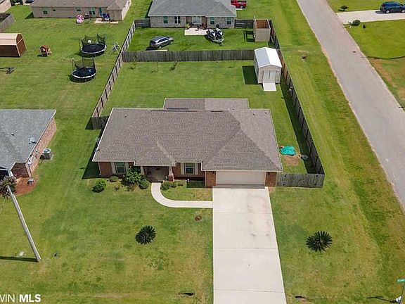 This Foley home is perfect for first time home buyers, downsizing or investors! The neighborhood is surrounded by beautiful Baldwin County farm land. As you enter the home, you will notice the high ceiling in the living room and a french door leading to the back porch. The kitchen/breakfast area is just off the living room and has a raised bar for casual entertaining. Additional flex space would be great for a dining room or home office. The master suite has a soaking tub, separate shower, dual vanity and a large walk-in closet. Other features include gutters, huge storage shed (10 X 20), hurricane shutters, split floor plan, covered back patio (with a ceiling fan), large fenced back yard and a corner lot. NO HOA. Schedule your appointment today!