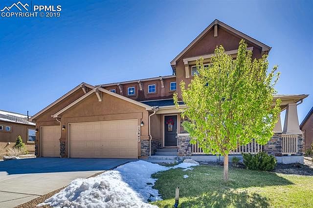 Beauty, style, upgrades, and comfort make up this fabulous find in desirable Monument! Views abound to the West, including an unobstructed view of Pikes Peak. To the East, stunning views of Black Forest. Backs to a neighborhood park! Beyond ordinary, this home boasts beautiful hardwood floors, custom color selections and fixtures. Generous kitchen with granite, stainless, island,gas plumb, and upgraded cabinets. Open main level concept includes dining room, living room, family room, and home office. **MORE** Family room with large windows looking out to park and Black Forest. Family room has gas fireplace to stay cozy on cool Colorado evenings. Home office includes custom built-ins and ample natural light. Fantastic mud and laundry room includes built-in cubbies and hooks! Stamped concrete patio leads to fully landscaped backyard, perfect for entertaining. Upper level does not disappoint with spacious master retreat and adjoining 5 piece bath. Out of this world mountain views to enjoy every morning and evening! Custom barn door provides utility and style! 3 additional, LARGE, bedrooms on upper level. Hall bath with natural light, modern style, and dual vanity. Basement, newly finished in 2018 with fabulous style and upgrades. Contemporary wet bar with custom cabinets and built-ins. Large rec/family room area. Spacious 5th bedroom with large closet. Dream guest bath! Extra unfinished storage! Bonus space under stairs - hidden away by custom door. Central Air Conditioning for those hot Colorado summer days! Minutes from shopping, trails, FOX RUN PARK, and award winning D-38 schools - don't wait!