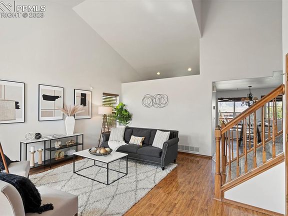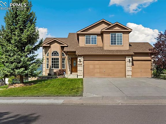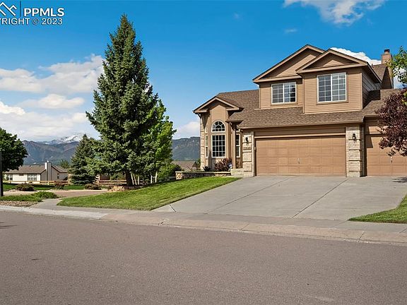 Welcome home to this stunning 2 story home, complete with a fully finished walkout basement, nestled on a large corner lot, boasting Pikes Peak views! From the moment you pull up to this home, you will fall in love with the lush green yard, mature pine tree, and regal exterior that features a 3 car garage. Step inside to the formal sitting room, which is the perfect entry way for guests. continue into the kitchen/dining/family room area, which flows effortlessly together, and also offers access to the enviable deck. The kitchen features tiled granite countertops and a gas range, while the family room has a fireplace to cozy up to on chilly fall and winter nights. The deck will inevitably become your morning coffee spot, as well as your evening retreat, as you watch the sun rise and set, with the stunning front range as your backdrop. A half bath/laundry, and access to the 3 car garage complete the main level. Head upstairs to the master bedroom retreat, which features an ensuite bathroom with dual vanities, and a large walk-in closet. Two additional bedrooms and an additional full bath complete the upper level. Head downstairs to the walkout basement, which is an entertainers dream, featuring a large rec room, access to the backyard, a wet bar complete with a mini fridge and a keg, an additional bedroom, and a 3/4 bath. This home offers plenty of space to spread out and enjoy life, both indoors and outdoors. A true gem with convenient access to I-25, and easily commutable to Colorado Springs, Denver, USAFA, all Northgate and Interquest amenities, Fox Run Park, and so much more!! Schedule your showing today!