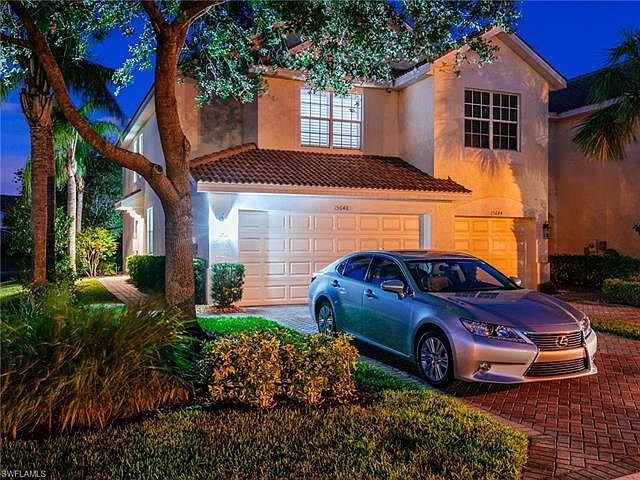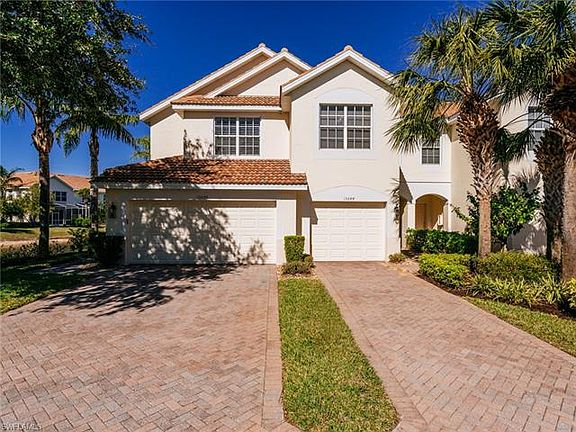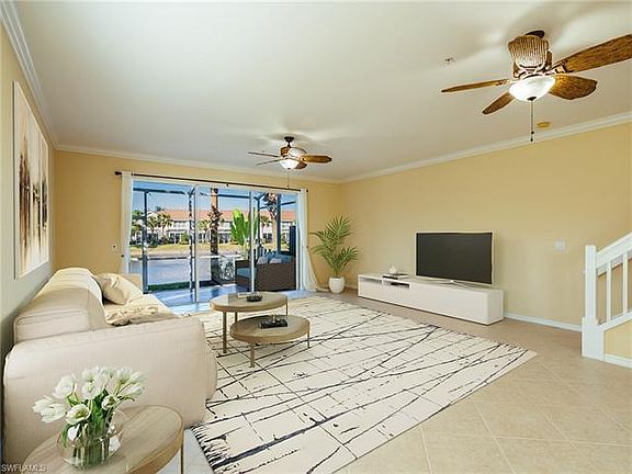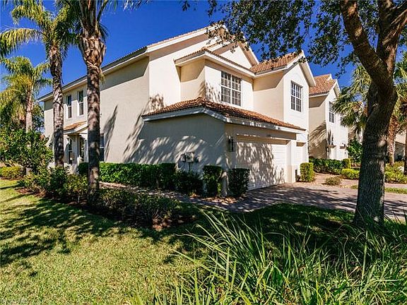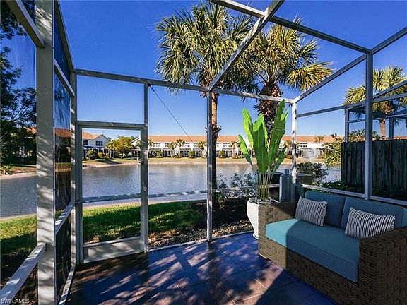 Exclusive location! This newly updated 3 bed, 2.5 bath town home features exceptional lake views and $25,000 in upgrades. Teak Acacia wood floors upstairs, large diagonal tile downstairs, crown molding in living room and kitchen, plantation shutters, upscale Maytag washer/dryer, security cameras, and a built-in safe distinguish this listing as top-of-the-market. Boasting a BRAND NEW stainless kitchen appliance suite by Whirlpool, stylish kitchen backsplash, energy-efficient LED lighting throughout, and a fresh coat of interior paint, this home is dressed to impress. The ONLY lot with water on two sides, this end unit offers a wide patio view and more privacy. Built by Pulte Homes, The Montenero model has 1715 sq ft - the largest floor plan in Milano. Large master bedroom with vaulted ceilings and walk-in closet. Dual sinks in master bath. Convenient second floor laundry. Two-car garage with storage shelves. Milano Development amenities include basketball court, tennis court, BBQ grills, community pool and spa. Conveniently located in North Naples on Livingston Rd., 5 minutes from the interstate, and near luxury golf communities such as Mediterra, Talis Park, and Tiburón.