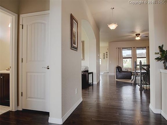 This is the perfect home for anyone looking for luxury and the best views! You first drive up your private driveway to a beautiful stucco and stone ranch home featuring a three car garage and a small wine vineyard in front. Once you enter the home you are welcomed by beautiful wood floors leading you to the large living room with a gorgeous stone fireplace. Turn to your left to see the open kitchen featuring upgraded granite counter-tops, upgraded wood cabinets, & upgraded stainless steel appliances including a gas stove! The kitchen also features a butler's pantry! The home has a bedroom upfront that could be used as an office if desired, a walk through laundry room with access from the hallway or master bedroom. You can enjoy the outdoors on either the covered back patio backing to open green space or the custom new deck on the side of the home facing the full front range for spectacular views of the mountains and views of the community park right across the street. The HOA has already approved a gate for the fence so you can have quick access to the park. Oh wait I am not finished yet! If you head downstairs to the basement you can enjoy the spacious family room cuddled by the fireplace or entertaining friends at the bar to include a fridge! Beautiful home that will not last long so bring your offer!!