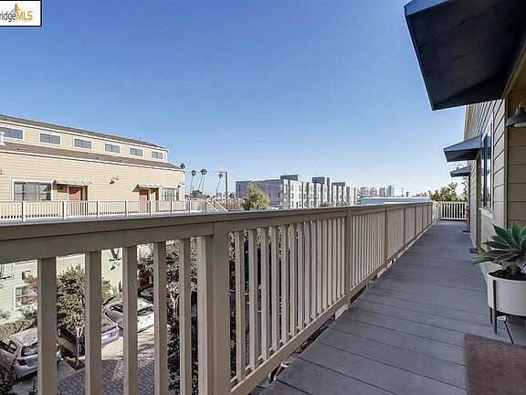 Ultra-hip 2-level loft on a quiet tree-lined street minutes from S.F. & Emeryville. This top floor, end unit has high vaulted ceilings letting in tons of light. Lower level has primary bedroom with en-suite bath and laundry, an open floor plan with a living room/ dining area, Heath Tile fireplace, and access to private roof deck. The open modern kitchen offers stone countertops and stainless steel appliances with a breakfast bar. Upper level has additional full bath, access to another roof patio, and loft which is perfect for a home office, "zoom room", workout/yoga space, or additional living area. Bamboo wood flooring throughout with Carrera/Spanish marble bathroom floors & accent tiles. Complex has security gate & 1 designated parking spot. In a prime location on the Oakland-Emeryville border, local attractions include Horn BBQ, City Slicker Farms, Emeryville shopping and restaurants. Easy commute to SF near Fwy and less than 1 mile to BART.