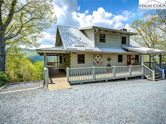 Enjoy 10 acres on the top of the mountain and front south facing sides. You will find trails, rock dens, and wildlife. From the back deck you can hear the falls of Buckeye Creek. From the front deck you can see Beech Mountain Ski slopes. Wrap around porches feature swings and long range views are spectacular. A beautiful maintained log home with 3 bedrooms and four baths. An additional bonus room and sleeping quarters for guests. This has a three bedroom septic permit. master on the first floor with granite vanities in the bath and laundry. Upstairs bedrooms feature cathedral ceilings, with window dormers for additional space. Well laid out parking area for all your guests parking, which features the 12X20 outbuilding. This building is perfect to store your outdoor toys. Perfect location for the ATV/UTV enthusiast. You are 10 minutes from the Watauga River access . 5 minutes to Beech Creek Swimming Hole, that offer hiking and fishing.