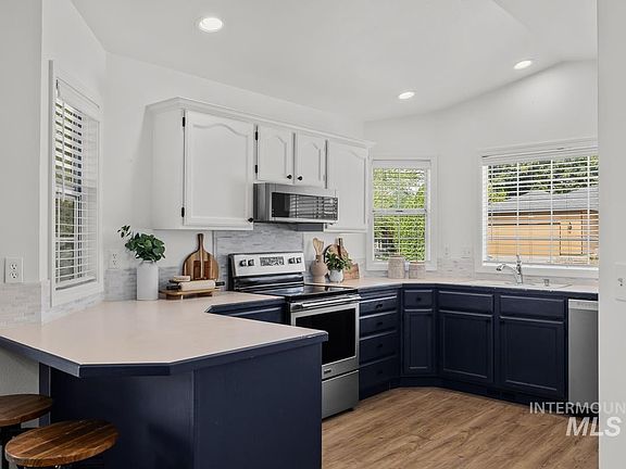 Welcome to this charming corner-lot home, just a block from Eagle Hills Golf Course! This cute, well-designed floorplan features an open concept layout with a bright kitchen equipped with stainless steel appliances, ample counter space, and includes a refrigerator—perfect for meal prep and entertaining. The sunny living room with large windows invites natural light, creating a warm, welcoming atmosphere. The master bedroom offers a peaceful retreat with a spacious walk-in closet, walk-in shower, and plenty of storage space. The washer and dryer are also included. There’s NO HOA, offering you greater freedom and flexibility. Plenty of room for your toys, with space for a small boat or RV. Located just minutes from downtown Eagle, parks, and shopping, this home is in great condition and ready for you to move in. Don’t miss this rare opportunity to own in Eagle at this price—this home offers the perfect blend of comfort, convenience, and value. Move in and start enjoying all that Eagle has to offer!