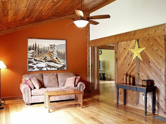 Unique single story living with rustic charm thruout! Hardwood flrs, updated kitchen with SS & pantry; vaulted FR with stone FP & sunroom. Finished walkout LL w/full bath. 40x40 garage w/ water & elec, 30x26 drive thru garage, 40x12 carport & an additional shed for storage. Beautiful setting w/24x24 covered slate patio & walkway!