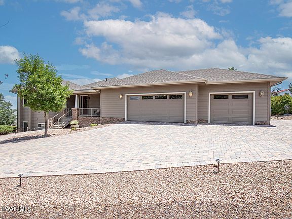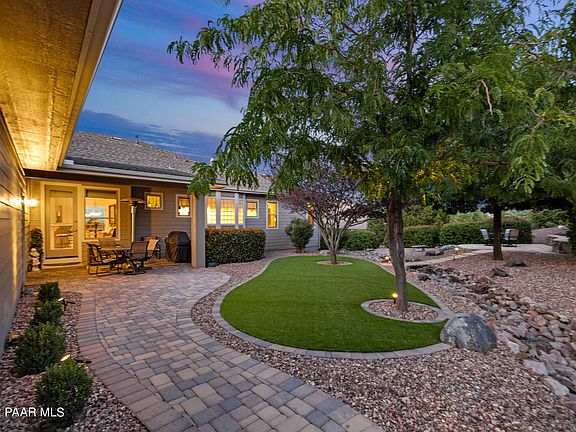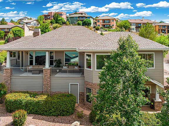 FOREVER PANORAMIC VIEWS w/single-story living in meticulous cutom home, w/incredible yard & the NEW ROOF IS SCHEDULED. Truly a must see gorgeous-gated Parkside home, w/split floorplan, in the prestigious Prescott Lakes community. Perfect for entertaining w/5 decks/patios, 3 covered & 1 huge wrap-around. Each w/views. Enjoy views of the Granite Dells, Mingus Mountain, San Francisco Peaks, Mt. Williams & Solstice Mesa from four 8' French doors & picturesque dual-pane windows. Literally views/privacy from every room. Professionally landscaped w/mature trees for privacy, artificial turf w/paver border, custom paver sidewalks & 150ft paver driveway w/added parking pad beside the garage. New quick-connect gas bibs for BBQ & patio heater. Open floorplan w/high ceilings, great room & 4 bedrooms.