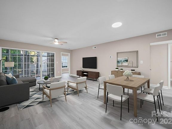 Stunning completely remodeled 2BR/2BA condo with 1,126 SF and located just 2 minutes from I-77. This home has an open floor plan with seamless flow and is located in a quiet development with lots of rehabs. Recent updates include luxury vinyl plank flooring throughout, fresh paint, updated lighting, and modern kitchen with quartz counters, stainless appliances, and white cabinetry. Both bedrooms feature beautifully updated ensuite baths with luxury tile, quartz counters and new vanities. Cozy fireplace in living area perfect for entertaining. You'll love the spending time with friends on the screened porch accessible living room. Close to dining, shopping, and entertainment. Move-in ready condition! Some photos ave been virtually staged.