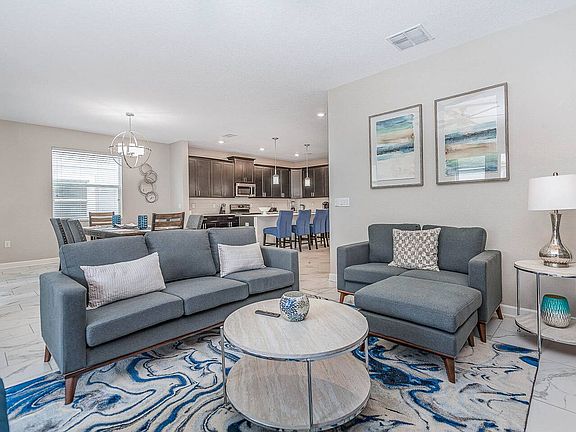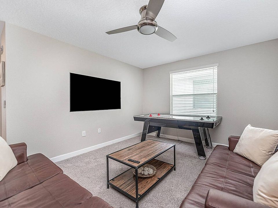 Join us for a magical stay and unprecedented Disney experience at the exclusive Champions Gate Resort in Orlando. Newly renovated, this 6-bedroom, 5-bathroom home is the ideal getaway for family and friends looking to make lifelong memories. Whether you choose to spend your time exploring Orlando and the Disney parks or prefer to spend your day entertaining at home, you will have everything and more needed to have an amazing stay. The home features a private arcade with unlimited free play. High ceilings and long hallways create a luxurious and Floridian ambiance. The kitchen is a must-see as it can entertain and seat a large group and it comes fully stocked with any appliances you will need. Although there are multiple pool options within the resort, you can enjoy your own private, lanai-enclosed pool right in the backyard. There is plenty of space to sit back, grab a drink, and relax after a long day in the Orlando heat. The outdoor area offers a grill, outdoor dining area, pool seating, and toys. The Willy Wonka-themed bedroom is great for entertaining as it even features a bed with a built-in slide. The driveway can fit two cars and parking is also available on the street. The possibilities are endless in this home, and you will want to return. Washer and Dryer available. Grill available for $120 per stay, delivery propane tank and cleaning included. Pets are welcome for a fee of $100 per pet, though cats are not allowed due to allergies. A complimentary pack n play and highchair for the kids. Pool cleaning and lawn care are provided on a weekly basis. Conveniently located near Orlando theme parks such as Disney World, Legoland, Universal Studios, and Seaworld, ChampionsGate offers first-class, resort-like amenities for your entire family. Located within the 900-acre Champions Gate community, our luxury vacation resort has an 18-hole championship golf course, a fully equipped gym, a games room, and multiple sports courts. Guests have access to a selection of swimming pools, perfect for kids who love the waterslides and splash park. Adults can take advantage of the lazy river, or relax in peace under a private cabana. The perfect space to unwind and recharge after fun-filled days at Orlando's famous parks. Guests of Championsgate Resort also have access to a movie theater, a shop, and spa. On-site, the resort has a restaurant and bar, including a poolside grill, a sports bar, and a clubhouse. The property is monitored and treated regularly by a professional pest control company. However, being in the sub-tropical climate of Central Florida, there is still a possibility of insect intrusion from time to time. Palmetto bugs and other insects are very common in this area, and a wayward bug found inside a home is not indicative of an infestation. When you arrive at the property, you should find everything you need to get your vacation started. Guests are responsible for replenishing their own additional products during their vacation stay. A grill is provided, but propane is guest provided.
