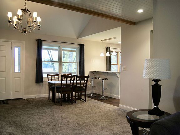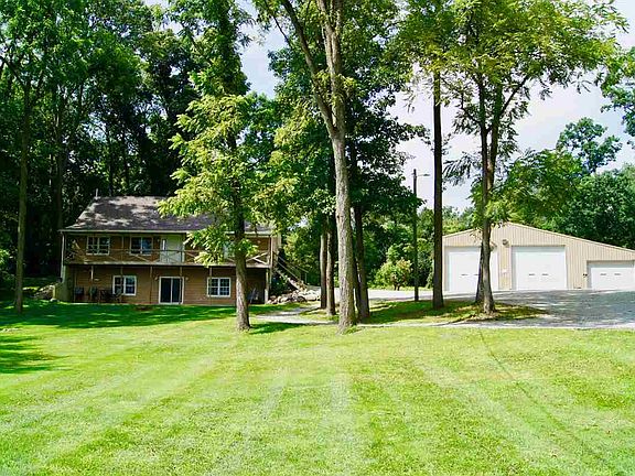 A rural setting with private pond on a 2.25 acres with private, wooded back yard. This cape cod home has recent updates completed by Coplen Construction. Over 4,100 finished sq ft of living space with an open concept floor plan. A welcoming foyer and dining area open to the great room and new kitchen with hardwood floors, breakfast bar and plenty of cabinet space. Main level master suite with full bath and access to the laundry room plus second bedroom with full bath. Upper level with attractive catwalk and two spacious bedrooms. Walkout basement with finished family room and guest room with large walk in closet. Enjoy the private backyard deck, covered front porch or working in the 62x64 outbuilding with tall ceilings, loft area and painting area.