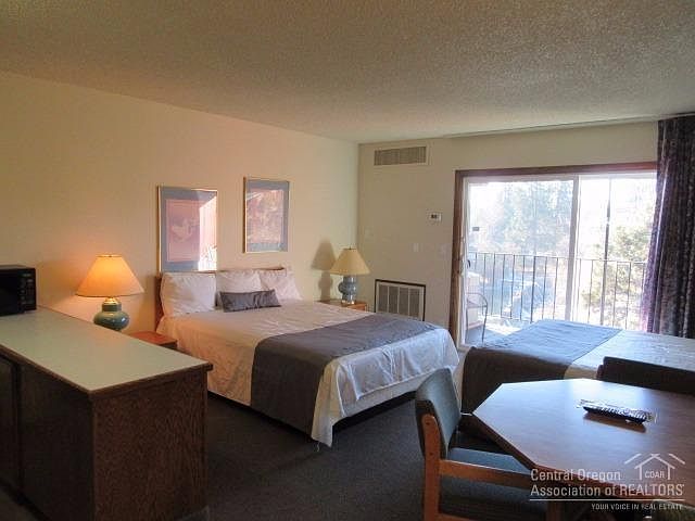 Priced to sell. Want a vacation getaway near downtown Bend? Relax and unwind outside on your private balcony listening to the peaceful sound of the river while enjoying the view. Here's a Studio unit with 2 queen beds, separate lock off unit with queen bed and full bath. You can keep this in the rental pool and pay no utility or HOA bills. Or, you can make this your vacation home or primary residence. Located next to Pioneer Park and a few short blocks to downtown Bend.