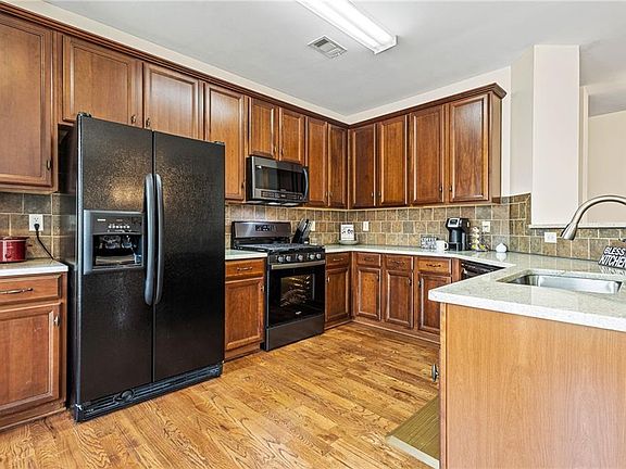 Light-filled spacesBackyard deckBlack stainless steel appliancesTile backsplashDurable vinyl hardwood flooringTile in the bathroomsOpen kitchen