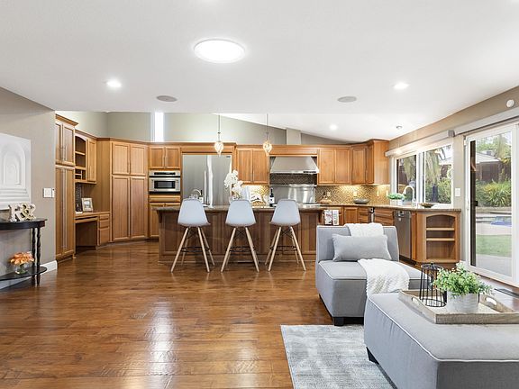Welcome home to 1565 Oslo Court, a stunning, single-level retreat in one of the most sought-after Livermore neighborhoods! This beautifully designed 2,300 square foot home boasts four spacious bedrooms and two modern bathrooms. The heart of the home is the Chef’s Kitchen, featuring sleek countertops, top-of-the-line appliances, a produce sink, oversized island, clear cherry cabinets, glass mosaic tile backsplash, and under-counter wine fridge. The primary bathroom is pure comfort, where every detail has been crafted for ultimate relaxation, including a heated towel rack and heated floors that offer a cozy, spa-like experience no matter the season. Step outside to the expansive backyard, where an outdoor kitchen awaits, ideal for entertaining guests. Dive into the sparkling pool or unwind in the spa while the little ones play in their own tree house. All of this is surrounded by a low-maintenance yard that offers privacy and relaxation. The property's court location ensures a peaceful setting with the convenience of RV parking. With its open layout and luxurious features, 1565 Oslo Court is the epitome of sophisticated living. Don't miss the opportunity to call this exceptional property your new home. Schedule your private tour today and experience the best of Bay Area living.