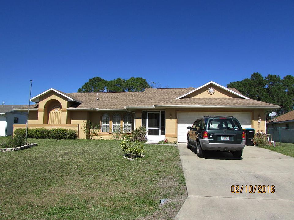 Concrete block home, not in PUD, no HOA fee, 3 bedrooms split floor plan. Living/dining room combo, with kitchen overlooking family room. Updated kitchen with granite counter top, tile flooring except carpet in family room. Screened enclosed porch with vinyl windows and under shingled roof. Partial fence from both side neighbors and drainage canal in back for extra privacy. City water. Storm panels. 0.6 miles walking to Discovery elementary school.