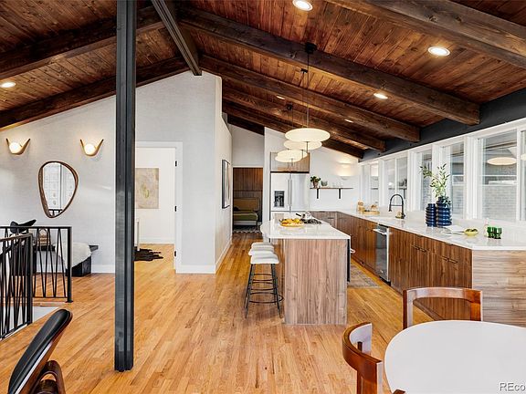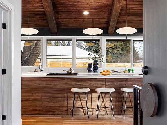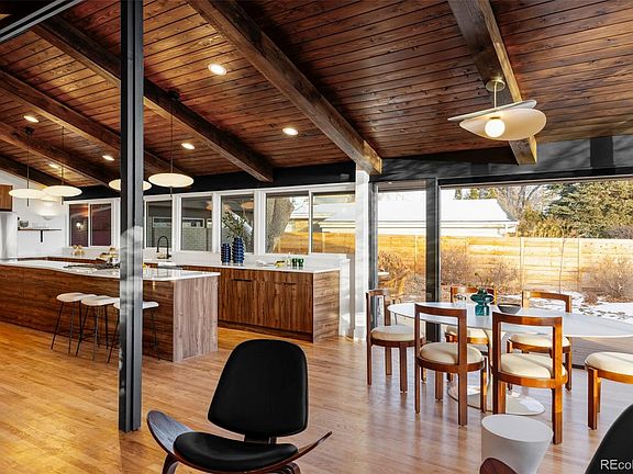 Welcome to this mid century modern glass house that's truly a showstopper with mountain views! Located right outside Krisana Park on a special enclave of mid century modern homes developed right after - this was originally built by James Ream for the previous family. This home boasts full walls of windows, seamlessly blending indoor and outdoor living, bringing the outside world in. As you step inside, you'll be captivated by the expansive open living space adorned with original hardwood floors, complemented by walnut veneer cabinets, and accompanied with stunning quartz counters.