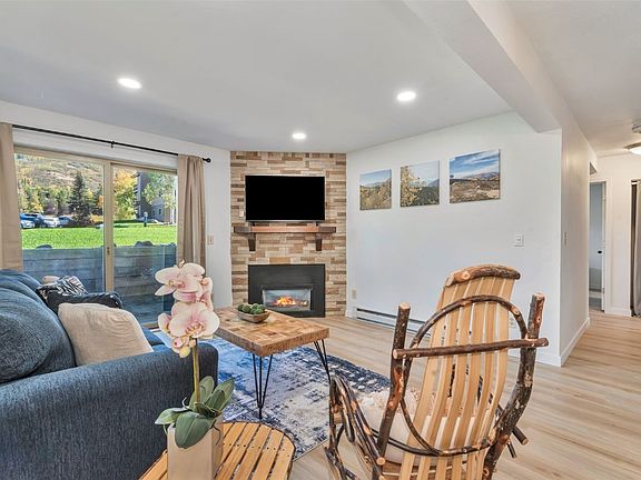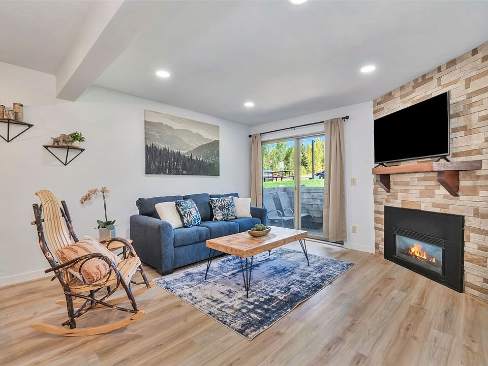 This charming 2 bedroom, 2 bathroom ground level condo at Shadow Run is the perfect mountain getaway or primary residence. This condo is located in the heart of the mountain area and is within walking distance of the ski resort. The unit features brand-new wood flooring and a fresh coat of paint throughout. Living room has a beautiful floor to ceiling stone fireplace to cozy up on cooler nights and a patio that looks out toward the ski resort. The kitchen has Corian counters, a fleet of stainless steel appliances and a lovely tiled backsplash. The condo has an in-unit washer & dryer, plenty of storage space, owner's closets off the deck and in the dining room, as well as a large storage locker off the entry stairs. After a long day participating in mountain adventures relish a soak in the shared hot tub and pool. The year-round complimentary steamboat bus is located just steps from your door and will whisk you to the area's hot spots as well as the ski resort. Or it is just a quick jaunt over Walton Creek Road to get to the ski resort.