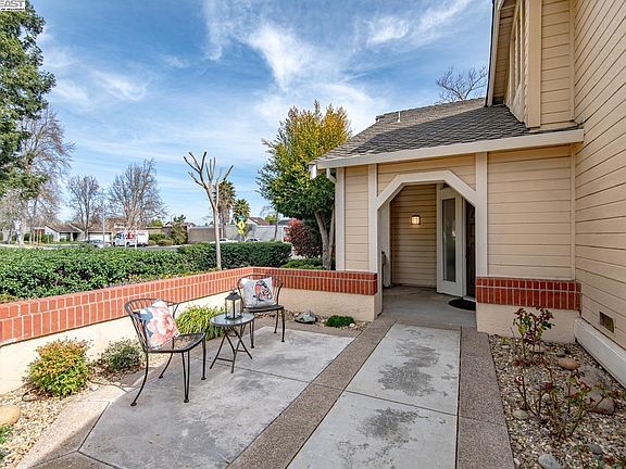 NEW PRICE!!!!!! Charming single-story home on a corner lot in the Danbury Park neighborhood of Pleasanton. Inside, the open-concept layout features a combined kitchen, dining, and living area with vaulted ceilings and luxury vinyl plank flooring. The bright kitchen offers new windows, a skylight, modern appliances, and a breakfast bar. The cozy living room has a brick-surround fireplace. The primary bedroom has access to an atrium and back deck, with an en-suite bath featuring dual sinks, a stall shower with seating, and a walk-in closet. The secondary bedroom, with a window to the atrium, offers a bright space. The second bath has a shower over tub. Enjoy a large backyard deck surrounded by lush gardens, plus a spacious paved courtyard in the front yard. Across the street, Orloff Park provides 8 acres of playgrounds, fitness areas, basketball courts, and picnic spots. Conveniently located near 580 and 680 freeways, top-rated schools, shops, restaurants, and Historic Downtown Pleasanton. A short drive to the San Francisco Premium Outlets and Livermore’s wineries. This home blends comfort, convenience, and outdoor living—a true Pleasanton gem.
