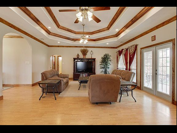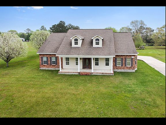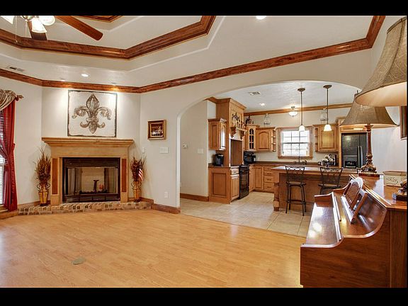 Beautiful country brick home on 6.5 acres with an amazing country view! Custom cabinets, open floor plan, granite counters in kitchen, 7.5x3.5 custom island/bar in kitchen, formal dining, double trey ceilings, fireplace, indirect lighting in kitchen/living/master, ceiling fans, very well insulated, security system, separate shower & jacuzzi in master bath with his and her sinks & cabinets, his & her walk-in closets, mop sink in laundry room with ample storage. Pond with wharf and partial covered storage on back of property. The super sweet ruby red grapefruit & satsuma trees produce fruit every year along with berries for making jam. Home has been used for a small event venue and capable of entertaining very large crowds!