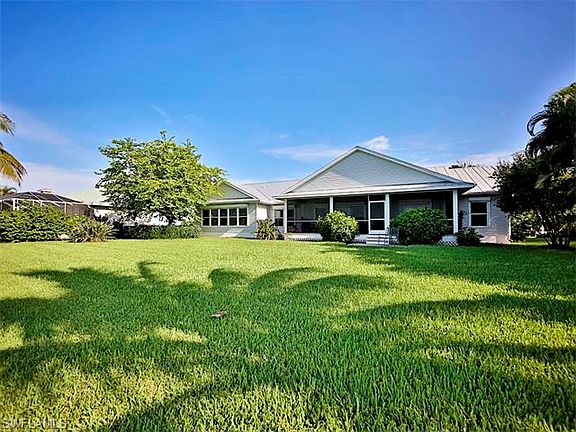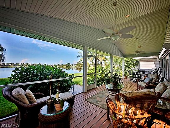 PRIME LOCATION! PHENOMENAL VIEW! Custom designed "Old Florida" home on a signature lake lot with sweeping long vistas and sought after Southern exposure. This impeccable 4 bedroom 3 bath features a 500 sq.ft. addition in 2010 to total 2500+sf of living area with many quality upgrades. The free flowing design allows for two potential master suites, one currently used as a light-filled quilting studio/workshop. Start your mornings on the large private screened porch with fresh coffee and your I-Pad or spend late afternoons there enjoying the colorful tangerine sunsets. Features include hardwood floors, electric roll-down hurricane shutters, a transitional kitchen with high-end stainless appliances (2011), remote task lighting illuminating granite counters and travertine backsplash, elevated ceilings, walk-in closet "you have to see to believe", retractable front screen door, French doors; well maintained and located in popular Caloosa Creek, a gated pool/tennis enclave of Old Florida architecture near Sanibel and the beaches.
