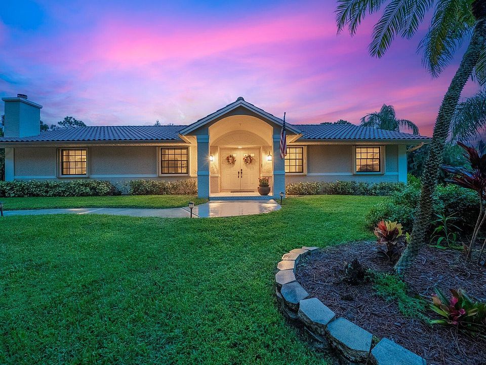 Nestled on a sprawling 1.15-acre parcel in the sought-after Palm Beach Country Estates, this remarkable 4-bedroom, 3-bathroom residence offers the perfect blend of comfort and elegance. With a thoughtfully designed split floor plan, you'll find privacy and convenience in every corner.Step inside and be greeted by the airy open-concept layout, seamlessly connecting the spacious kitchen and living room - the heart of your new home. Enjoy the kitchen island perfect for entertaining friends and family while the wood-burning fireplace sets the stage for cozy gatherings and memorable evenings. Unwind in your private retreat - the master bedroom - boasting a spa bathtub and a walk-in shower, a true haven for relaxation. The walk-in closet adds convenience to your daily routine. Updated tile and Brazilian Cherry Wood flooring create an atmosphere of timeless beauty and easy maintenance.