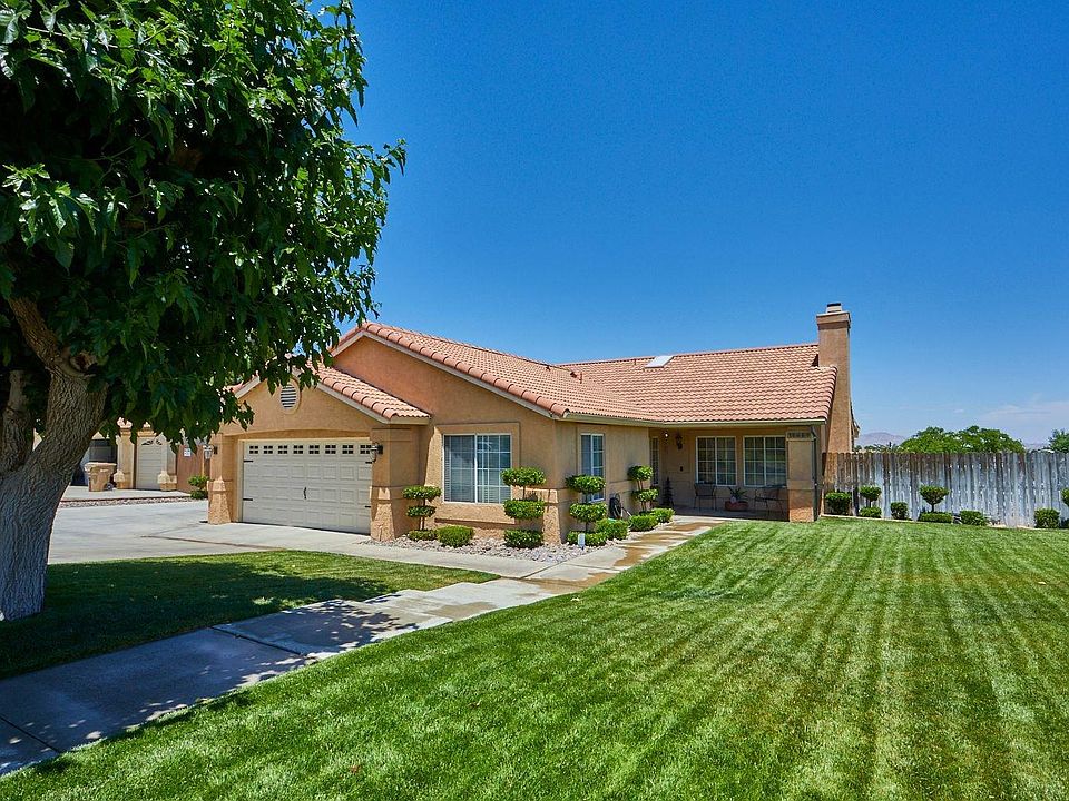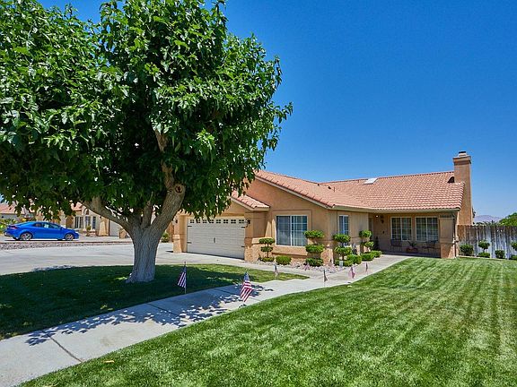 Gorgeous Hesperia home, very well cared for 4 bedroom 2 bath, fantastic location, close to schools and shopping. This home features elegance upon entry, lovely open floor plan, well appointed kitchen with granite counters, stainless steel appliances, 5 burner stove with air cooker, Corian sink, wonderful large garden window, large family room with brick fireplace, lovely dining area adjacent to kitchen, this home has beautiful lighting and many ceiling fans, spacious bedrooms, master bedroom is light and airy, beautiful master bathroom with recent remodel, guest bath is also beautiful with recent remodel. Outside features include gorgeous landscape front and back, large rear patio, Spa, very nice shed, additional custom items, lots of concrete with RV parking and privacy fencing. This home is truly beautiful with pride of ownership. A must see!