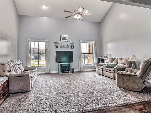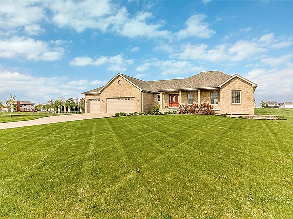 TRANQUIL LIVING IN THIS 3BED/2BATH SPRAWLING RANCH WITH 3 CAR FINISHED GARAGE LOCATED ON A CUL-DE-SAC BOASTING A LITTLE OVER AN ACRE OF LAND! Beautiful hardwood floors as you enter take you to the spacious Great Room and HUGE eat in kitchen! Featuring Medallion Maple cabinets, ceramic tile, Large island and all appliances! Master features private bath with whirlpool tub and separate shower! Other 2 beds are located on opposite side and have hall bath to share! The large unfinished basement is perfect for storage or plumbed for future bath if you desire to finish at a later date! The 3 Car garage is drywalled! Large Acre lot for room to roam!