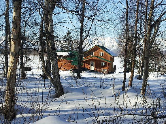 Take the winding wooded driveway to your secluded, well-built custom home in the woods & on the river. In-floor radiant heat. Ground lvl brm w/wood stove & walkout to large deck overlooking the Matanuska River & mtns. Cathedral ceiling living room w/river view, deck. Loft above kitchen counted as bedroom. Tile floors Views & more views. Detached 280 sqf newly renovated cabin w/kitchen & 3/4bth.