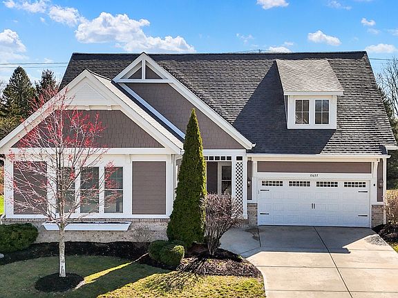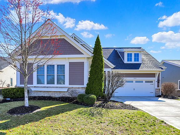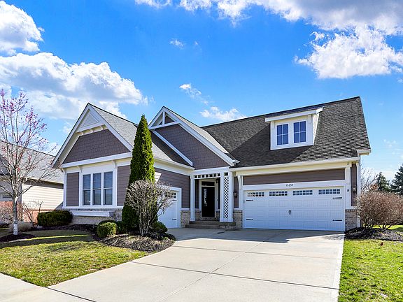 Located in the gated Bridgewater Parks section, this gorgeous 3-bedroom plus den ranch in the offers an open-concept design and an abundance of luxury features, including a beautiful 4-season sunroom with a cozy fireplace-perfect for enjoying year-round! The home also boasts hardwood flooring in the entry, kitchen, breakfast room, and great room, creating a seamless flow of elegance and warmth. Gourmet kitchen features granite countertops, Aristokraft cabinets, and stainless steel appliances. The spacious great room is ideal for entertaining and everyday living, and the 3-car garage provides ample storage. Primary suite offers a tile shower, walk-in closet, and convenient access to the large laundry room. The finished lower level includes a recreation room, guest bedroom, and a full bath. The basement also features a wet bar and entertainment area, perfect for hosting family and friends. Enjoy the neighborhood park just a short walk away, along with access to scenic walking trails. This home includes a Bridgewater Social Membership, giving you access to resort-style amenities just in time for the warmer weather.