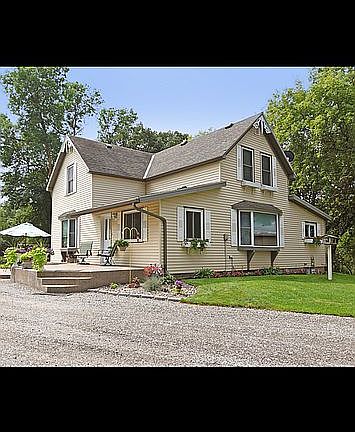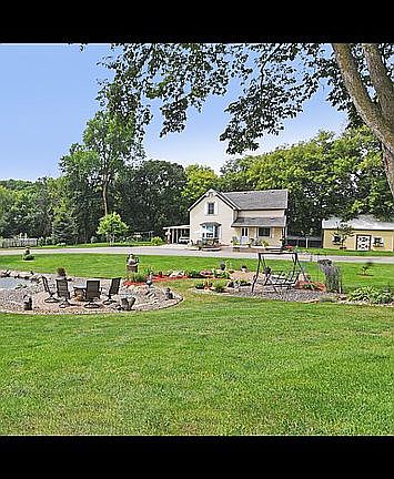 Country style farmhouse tastefully remodeled. Open design with original hardwood floors. Recently updated kitchen and black stainless steel appliances. Natural gas furnace. Recent well updated. 4.5 acres of meticulously landscaped lawn and flower and vegetable gardens. Beautiful orchard that boasts apples, pears,plums, cherries and grapes. Large koi pond with water features. Many mature trees. 30x40 heated pole shed with 10 ft sidewalls. 12 x 24 outbuilding.. Inground sprinkler system.
