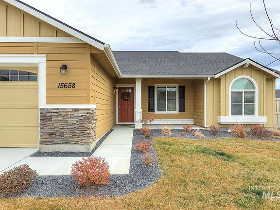 This adorable SINGLE level complete with 3 car garage features fully landscaped and fenced back yard! Greeting you with amazing curb appeal with rock accent and front porch. Open concept living with vaulted ceiling, cozy gas fireplace, large kitchen, stainless steel appliances and bar top spaces, perfect for entertaining and full of natural light. Immaculately maintained! Vallivue schools!
