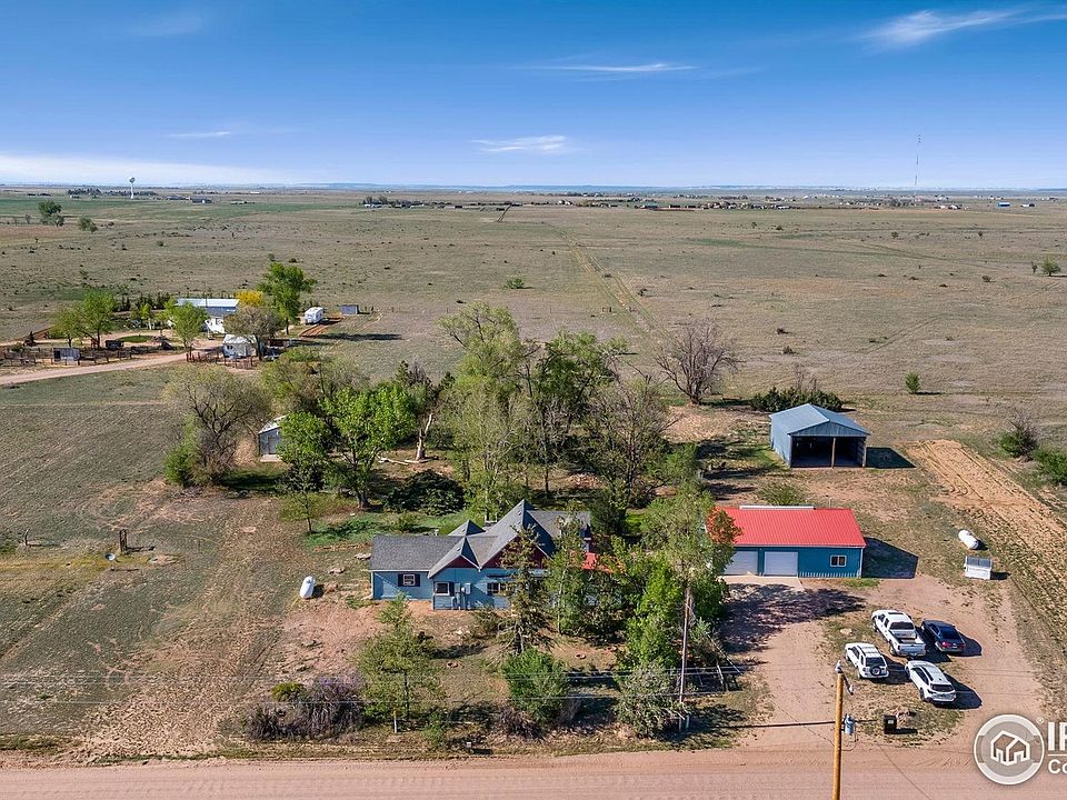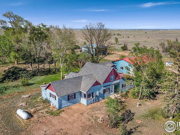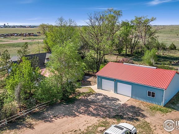 Back on Market at no fault of home! Tucked away on over 3.8 acres of peaceful country land, this property is a dream come true for anyone craving wide open space and a slower pace of life. Enjoy the soothing sounds of birdsong by day and gaze at crystal-clear starry skies by night. Mature trees surround the landscape, creating shade, privacy, and a serene atmosphere that feels worlds away. The home has been refreshed with thoughtful updates for ease of living, including new flooring on the main level and fresh paint throughout so it feels move-in ready with all the right touches. There's room for everyone to spread out and enjoy, with multiple living areas designed for both relaxation and entertainment. A built-in wet bar and classic stove make the living room a cozy favorite for gatherings, while the family room and sunroom add flexibility for hobbies or quiet escapes. The kitchen features newer stainless-steel appliances and plenty of storage for your cooking needs. The main level also includes two bedrooms, including a primary suite with an ensuite bath and walk-in closet. Upstairs you'll find 465sqft of bonus space that can serve as a guest suite, studio, or additional lounge. Car enthusiasts or hobbyists will appreciate the 1188sqft heated garage, which includes shop space and an RV electric hook-up outside. With horses allowed and extra structures for storage or equestrian use, this land is ready to work or play. There's an 837sqft pole barn and a detached 399sqft garage that offer immense potential for a variety of uses. A fenced dog enclosure with a dog door leading to the house provides convenience for pet owners. Just 30 minutes from Greeley and with quick access to I-25, you can enjoy the peace of the countryside without sacrificing convenience. Brand new roof and gutters! All of the siding for the home is being replaced. Two permitted wells for the property!! One is in use for the house and landscaping, the other is not in use currently.