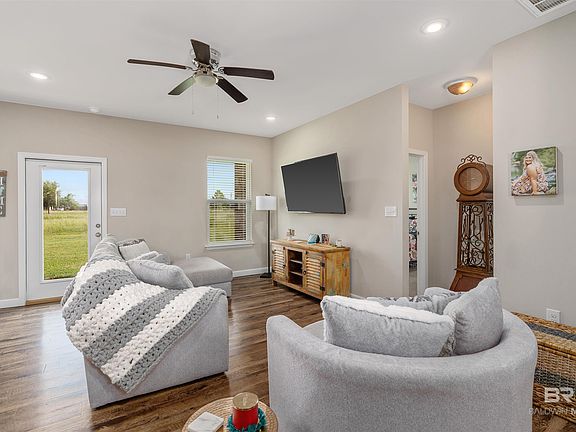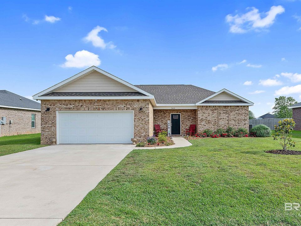 This charming 3-bedroom, 2-bathroom home WITH GARAGE offers a wonderful balance of comfort and convenience, making it an inviting option for those seeking a peaceful retreat close to the beautiful beaches of Gulf Shores. Step inside to discover a light and open floor plan that instantly feels like home. The interior spans 1450 sq ft, featuring luxury vinyl tile flooring that combines durability with elegance. The kitchen is with granite countertops, a stunning subway tile backsplash, and shaker cabinets. An eye-catching shiplap breakfast bar is also perfect for meal prep or casual dining. Each room is designed to maximize space and light, creating welcoming spaces for relaxation and comfortable living. The house is GOLD FORTIFIED, offering extra security and peace of mind. Outside, beautiful professional landscaping adorns the property, enhancing its curb appeal and providing a large yard that’s excellent for gardening or enjoying outdoor activities. This home not only meets practical living needs but also caters to lifestyle preferences, from its aesthetic features to its fortified construction. Whether as your primary residence or getaway home, this Foley property promises a blend of tranquility and accessibility that’s hard to find. Buyer to verify all information during due diligence.