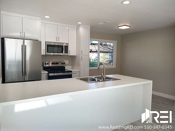 This newly remodeled, modern 2-bedroom, 1-bathroom apartment near Enterprise Park offers stylish, upscale living with high-end finishes throughout. The kitchen features sleek stainless steel appliances, elegant quartz countertops, and an open floor plan ideal for entertaining. Luxury vinyl plank flooring adds sophistication, while central heating and air conditioning ensure comfort year-round. The bathroom boasts a custom tile shower and en suite access from the primary bedroom. Additional amenities include a private balcony, off-street parking, and on-site laundry for convenience. This no-smoking, no-pets property requires a 6-month lease and renter's insurance, offering a clean and tranquil environment. Owner Pays: - Garbage - Water Tenant Responsibility: - Electricity & Sewer - Cable / Internet / Phone if desired Redding REI, Inc. CA DRE #02141937