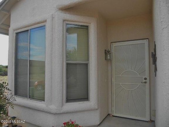 Excellent location just off Hwy 90 to Sierra Vista & minutes to I-10 to Tucson easy 30 minutes. Immaculate home has been freshly painted inside & upgraded w/security door leading to a beautiful new floor in the entry way continuing on to wood decor flooring thru out this home, on to the serene AZ room (enclosed patio) to low care gravel backyard including custom storage shed. Upgraded with a water softener & laundry moved inside from garage. Extra cabinets added to eat-in kitchen w/granite counter tops accented by beautiful back splash. Middle bdrm is perfect for office or darling kids rm w/twin closets. Lighted ceiling fans in all bdrms & living rm. Dining area w/chandelier. Master bath w/double sinks & w/lrg walkin closet custom shelves & additional rods. A must see