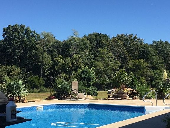 Beautiful custom home with pool and fenced back yard. 6.2 acres with beautiful front and side lawn. nice wooded hunting area out back. Nice open floor plan with hardwood in living areas. Master suite with sitting area and his and her closets. Master bath has heated whirlpool tub and separate tile shower with two shower heads and 3 body sprays. Very large back porch opening up to a in ground pool with slide. Pool is 54" deep thru out. Nice water feature by pool area. Detached RV garage with attic storage area. Detached garage exterior just like home.