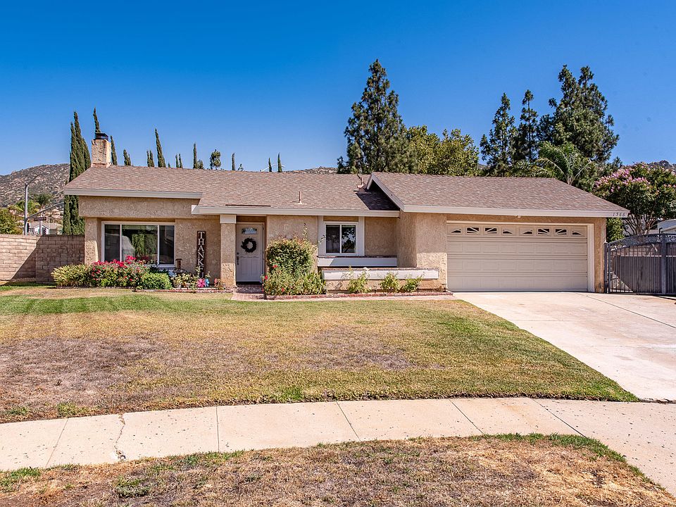 You'll fall in love with this charming 3+2 home located at the East end of Simi Valley on a small cul-de-sac. A brick walkway leads to the brick front porch. This single story features a fantastic backyard retreat, complete with a large covered patio, spa, fenced pool, large grassy area, trampoline, and gas barbeque hookup. There is still ample space for a garden, shed storage, or just room to roam. Patio has skylights and a ceiling fan. Solar panels installed in 2016, and new furnace and A/C as of March 2020. The living room has a cozy brick fireplace and recessed lighting. Smooth ceilings, dual pane windows and sliders throughout. All bedrooms have ceiling fans. The spacious main bedroom has 2 closets, en-suite bath, and a sliding door to the pool/spa. Bathroom has newer vanity and lighting. The light and bright kitchen has a breakfast bar and dining area, stainless steel appliances, recessed lighting, and slider to yard and garage. Neutral carpet in living room, hall and bedrooms. Washer/dryer hookups located in garage. Garage has ample shelving/storage space.