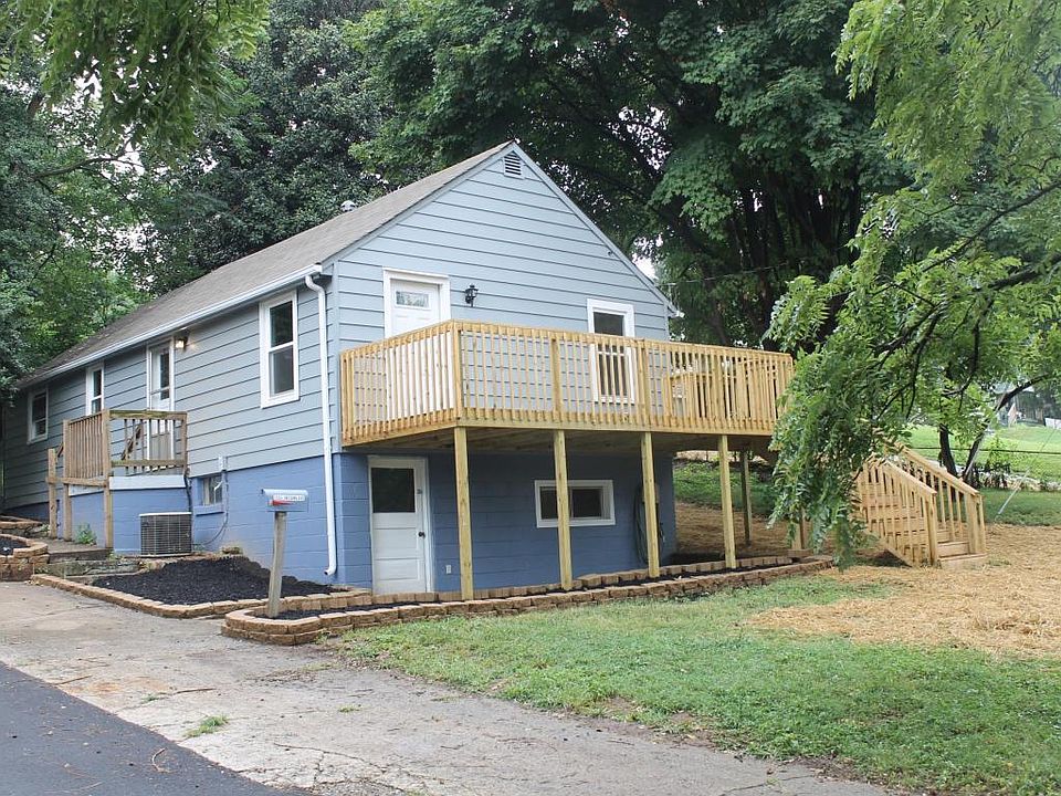 Lovely, renovated and move-in ready home in the heart of Camp Taylor. Check out this 2-bedroom/1-bath home situated on over a quarter of an acre lot with a full, walk-out basement. Enter to new bamboo flooring that continues throughout. The living room has access to an elevated deck that runs the front of the home for relaxing and enjoying the outdoors. The front bedroom is nicely sized and offers two spacious closets. Toward the rear of the home, an open kitchen with granite counter tops overlooks the dining area and living room and provides ample prep space, new cabinetry, and a brand new GE range and microwave. There is an enormous pantry just off the kitchen. Down the hall, find a large storage closet, the fully updated bath, and the 2nd bedroom. New windows throughout, recent roof,