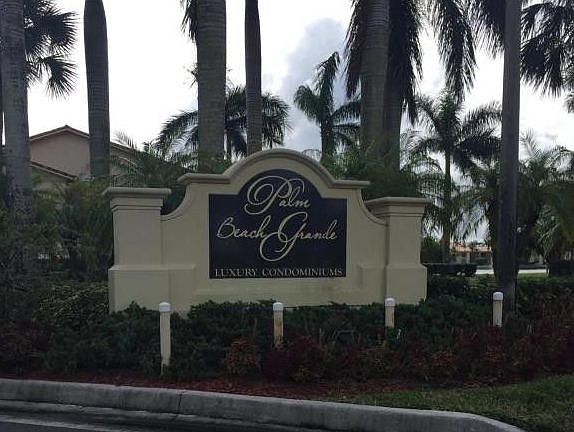 First floor 2 bedroom, 2 bath condo with water views located in the quiet neighborhood. Newer kitchen with cherry cabinets, granite counter tops and brand new stainless steel appliances. Freshly painted split floor plan hosts new water resistant beach wood colored flooring and tile. Community clubhouse with pool and tennis. One assigned parking spot with plenty of guest parking and pets welcomed. Palm Beach Grande is centrally located to shopping and entertainment, Turnpike, and Palm Beach International airport. A must see!