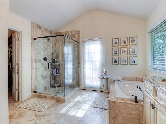 • Walk-In Closet(s), Separate Shower, Cable TV Connections, Hardwood Floors, Tile Floors, Whirlpool Bath, Carpet, Tray Ceiling(s), Rear Stairs