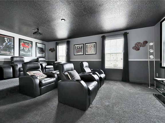 Make your appointment today to view this elegantly appointed fully furnished 8 bedroom, 5 bathroom home in the very desirable community of Champions Gate. 1566 Observer is fully furnished and rental ready and within close proximity to the clubhouse. The First floor features a large open concept with kitchen, family and dining room with ample seating. Downstairs also features a master bedroom and one additional bedroom and full bathroom. The garage has been converted into a games room which includes: a pool, Foosball, and air hockey table. The second floor features 6 additional bedrooms, laundry, loft area and a movie theater with reclining chairs and large TV. To finish off your new home you will enjoy the covered patio with OVERSIZED POOL and SPA. Champions Gate is a guard gated community featuring wonderful amenities for owners and guests alike. The Oasis Club includes a lazy river, two pools one with a zero entry, water slide, tiki bar, cabanas, splash pad, fitness center, games too, theater along with a full restaurant and bar! Enjoy living here full time or you can use for short term rental. Conveniently located just a few miles to I-4, providing easy access to Disney, restaurants and shopping. Donât miss this wonderful opportunity!