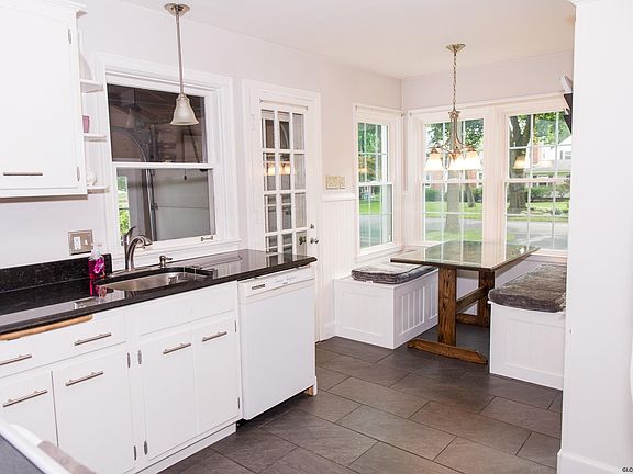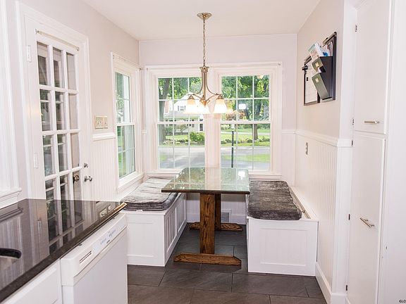 Charming Colonial in the heart of Old Niskayuna! Enjoy the tree lined streets and the large private back yard. Gorgeous hard wood floors throughout, granite countertops, built in banquette seating in the kitchen, stunning new bathroom and even a secret gated garden in the backyard! Relax outside on the second floor balcony or cozy up in the den with your favorite book!
