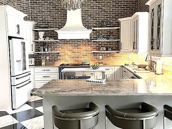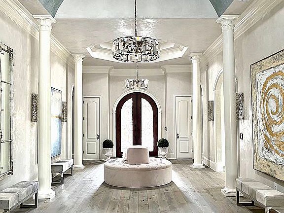 The floors in the house are French Oak and the walls are professionally plastered. All ceilings are 12 feet and up to 15 feet in the home's two barrel ceilings. The tiles in the kitchen and bathrooms are all exquisite, including mirrored wall tiles in the master bathroom. The large sliding door in the living room makes you feel like you are outside even when you're in and vice versa. There is a Sonos sound system throughout the house. Whenever there is a tower in front of the house and a veranda in the back- as most all of the homes in the Grande Dunes have- the interior of a house can be rather dark. This house has 5 skylights throughout, bringing in much needed daylight. It's literally one of the brightest, airiest houses in the neighborhood. There are custom, real brick walls in the upstairs theater room, the guest bedroom and the kitchen. The pool area is larger than most in the neighborhood and is heated for swimming year round. There is also a large mounted TV in the veranda, making outdoor meals and entertaining a pleasure.