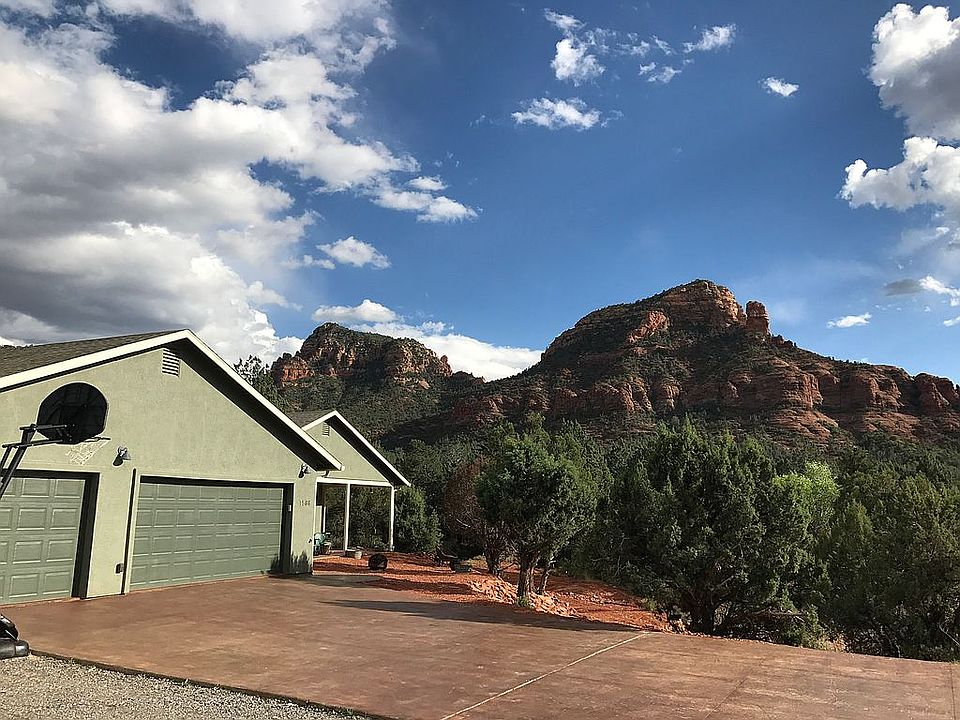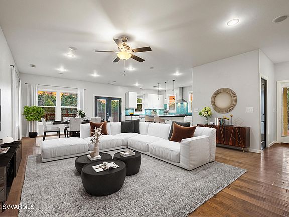 Motivated Seller - BRING ALL OFFERS! With significant down payment, Owner may carry offering favorable interest rate & terms! Call for details! Owners thoughtfully designed a compelling floor plan for joyful living! This newer home is move-in-ready with recent updates including new flooring & interior paint. Great views of Twin Buttes, Elephant Rock, Cathedral & Broken Arrow. A gathering place large enough to host your friends and family, with the conveniences of luxury amenities. Kitchen is a chef's dream! An abundance of counter space and storage, double ovens, two dishwashers, stylish teal backsplash, pot filler, farmhouse sink with red rock views, walk-in pantry with countertop for your small appliances, and large island with breakfast bar. Open to the living room, you won't miss a beat while cooking. The expansive Master Suite includes an oversized soaking tub, separate shower, large walk-in closet & access to covered patio. From the moment you enter into the massive great room you'll immediately notice the quality construction - minimizing road noise from inside the property. Four bedrooms are situated away from the road in a split bedroom layout. Thoughtful details make this property feel like HOME! Indoor & outdoor speakers, electrical switches for Christmas lights & one of the best features is the exceptional storage. The oversized three car garage has built in cabinetry and room for your toys, additional storage in rafters, and large closets throughout. Enjoy Sedona's mild four seasons from the wraparound covered patio & pergola with bistro lights, fenced area for your pups, and separately fenced garden area with raised beds! Truly one-of-a-kind property!