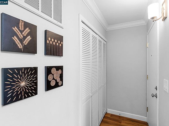 Absolutely lovely ground level end unit! You will be captivated by the inviting living room and spacious dining area with lots of natural sunlight. The entire unit was extensively updated throughout! The renovated kitchen offers shaker style cabinets, stainless steel appliances, simple and elegant quartz solid surface countertops. Full size, interior, side by side washer/dryer in closet for convenience. Tasteful and contemporary luxury vinyl plank (LVP) flooring installed entirely creating a seamless and expansive look. Recessed lighting and dual pane windows throughout. The open floor plan allows for a smooth transition from the living room to dining & kitchen area with slider door access to private patio. Both bedrooms are nice size with wall to wall closets. Enjoy the community swimming pool, perfect for those warm summer days. Many guest parking spots nearby with one assigned carport. Ideally located with easy access to highways 680 & 24, as well as great cafes, salons, restaurants and BART are within minutes.