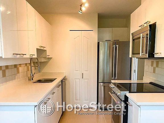 Stunning 2 bed, 2 bath suite at 1566 West 13th Ave occupying the entire north side of the building for maximum privacy. Approx. 1000 sq.ft. with sleek laminate flooring, stainless steel appliances, and a bright kitchen bay window. Two balconies offer breathtaking mountain views, with access from the living room and 2nd bedroom. Includes water, 1 parking stall, and storage. Recent rainscreening and window upgrades ensure a quiet, secure home. Steps to South Granville shops, groceries, transit, and close to VGH. Small pet considered (1 cat or dog under 15 lbs). No smoking. Professionally managed by Hope Street.